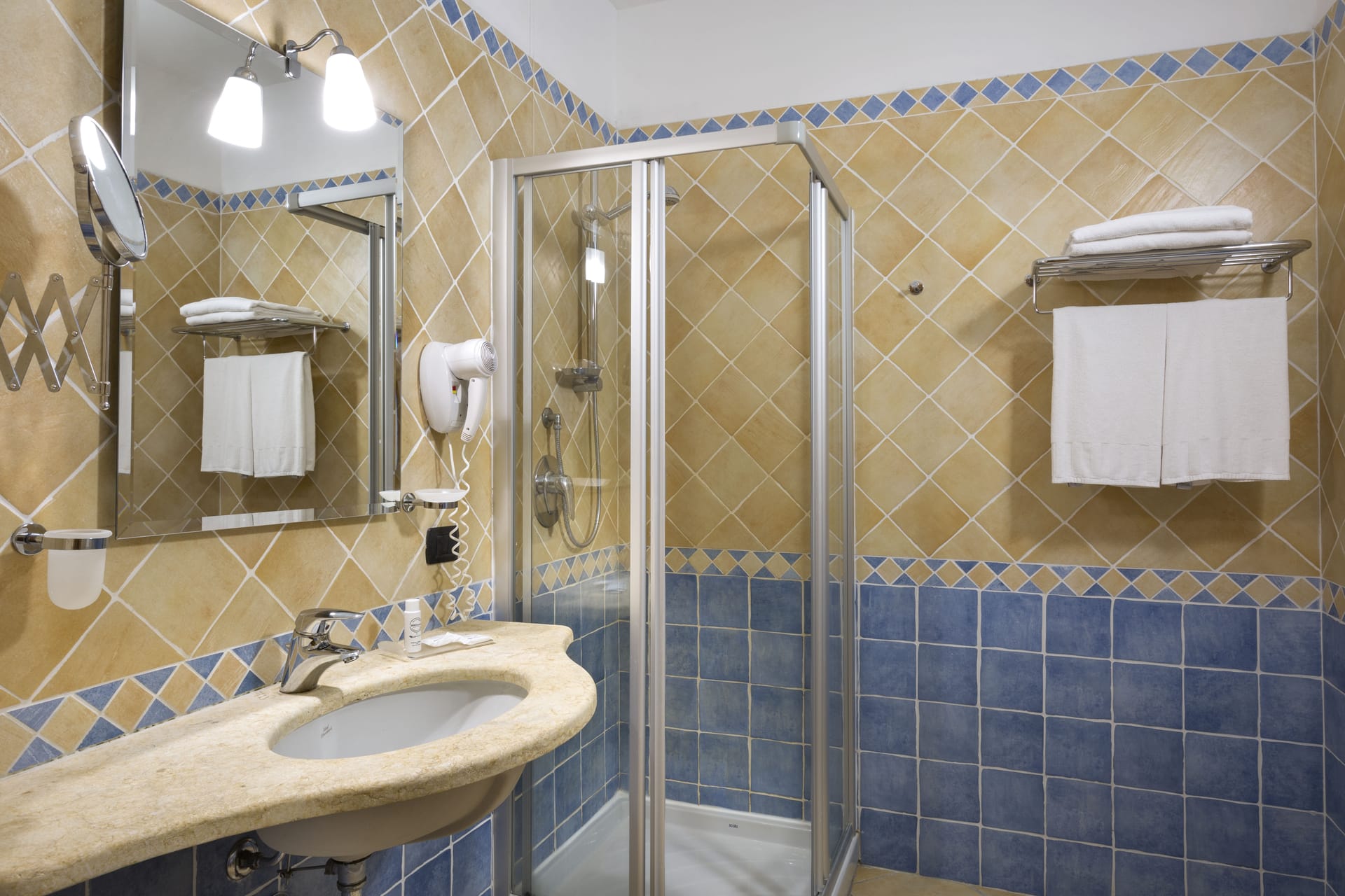 Le camere sono tutte fornite di aria condizionata, minibar, TV satellitare, set di cortesia e asciugacapelli.